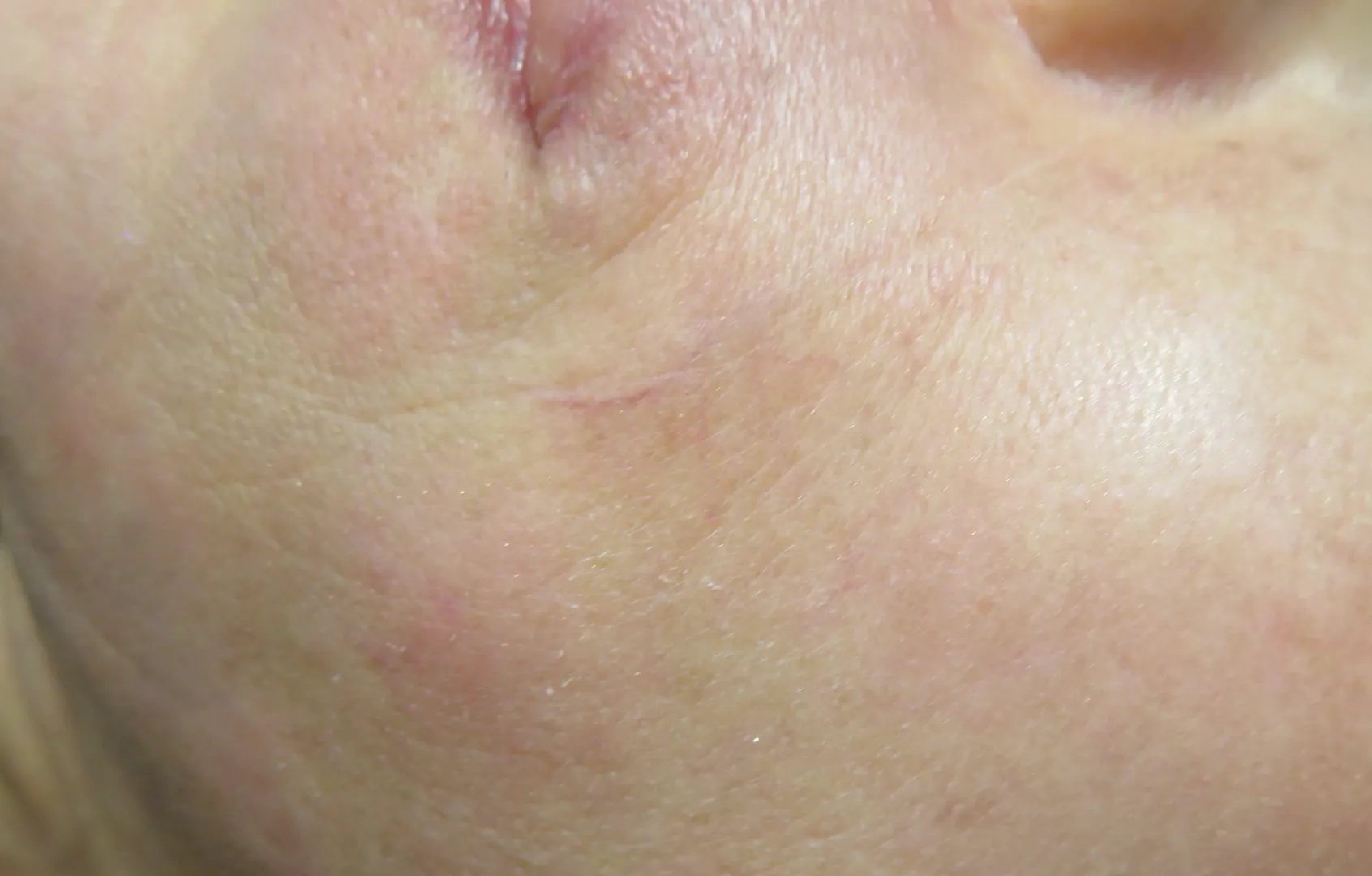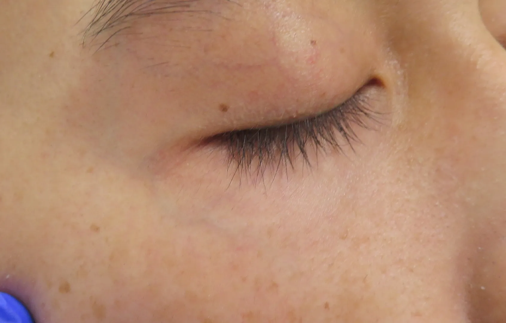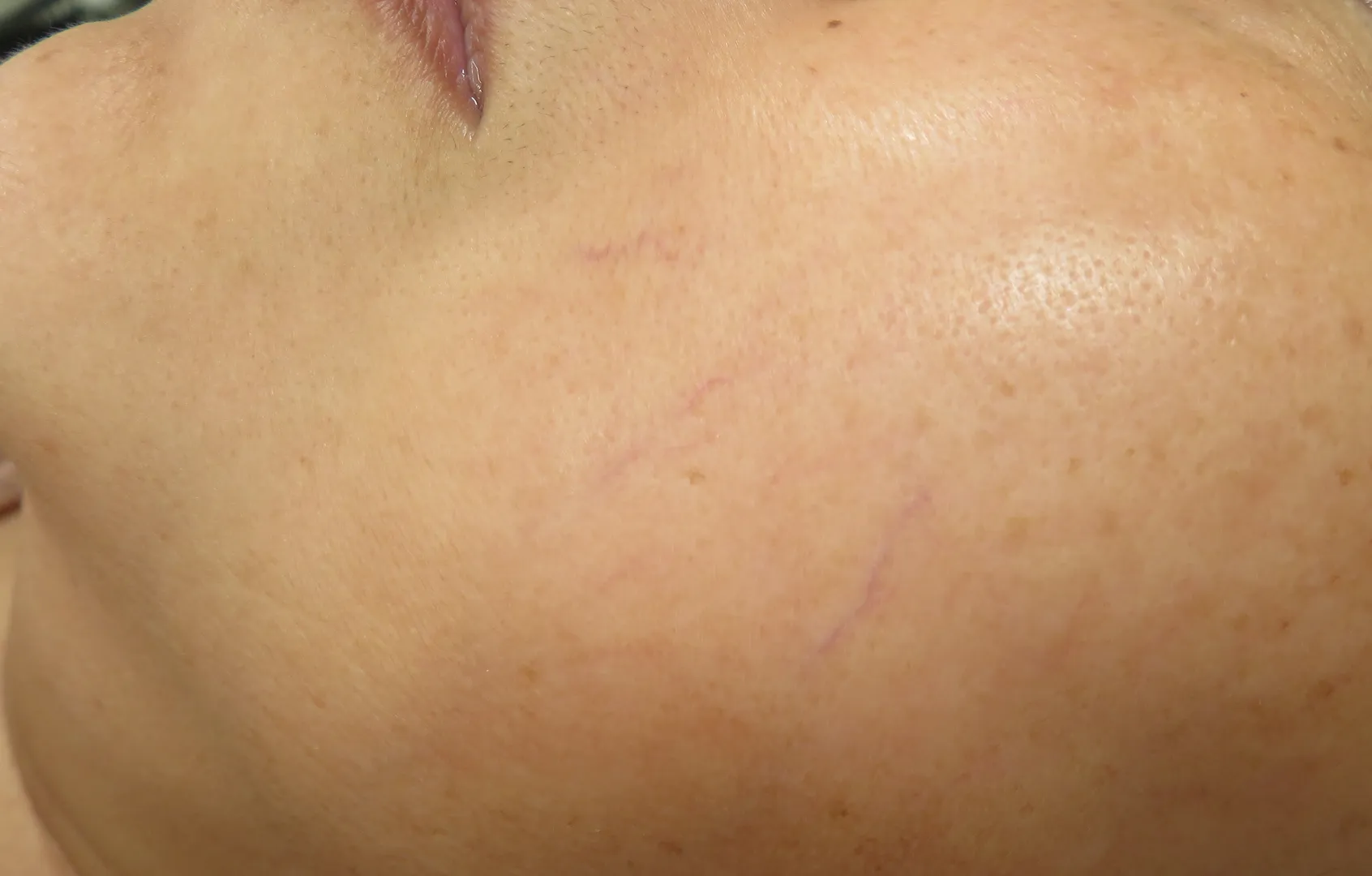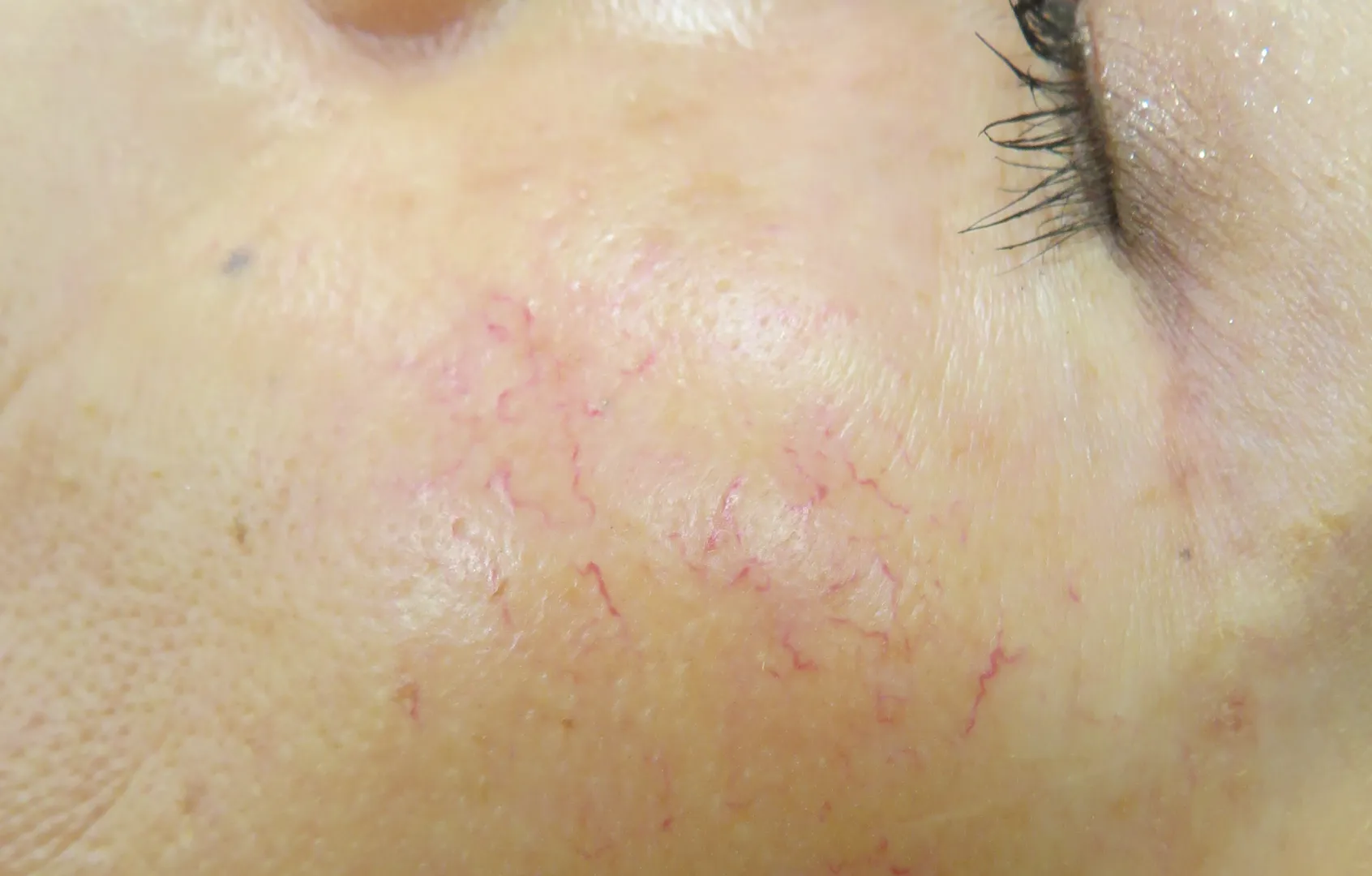 治療はピンポイントで行われるため、完全に消えるまでの回数には個人差がありますが、一度消えた血管は再発しません。 -