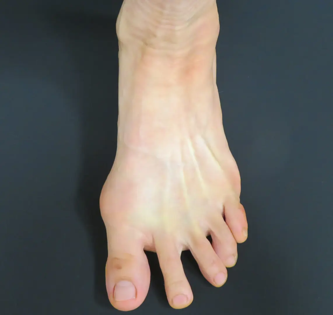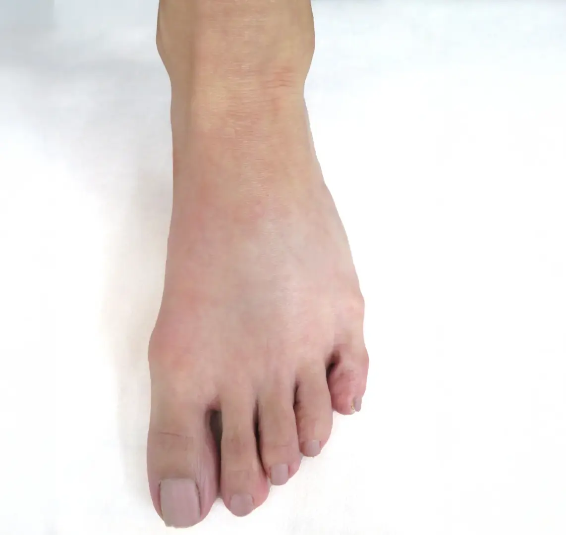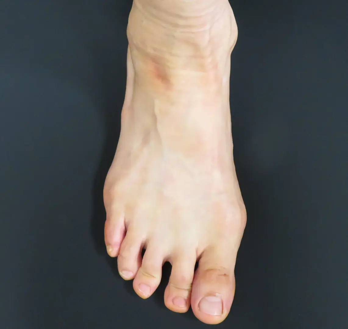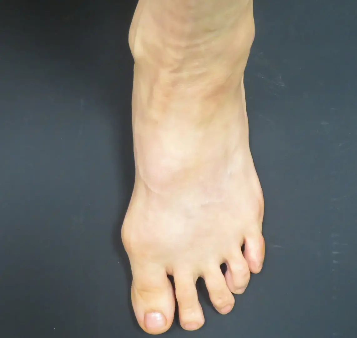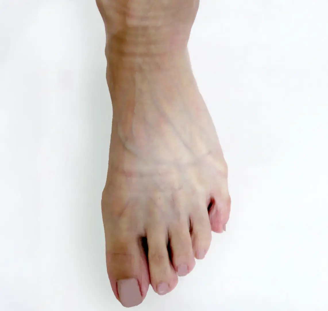 すると、足の甲の皮膚が薄くなり、血管やスジ、さらには骨の形状が目立ちやすくなり、