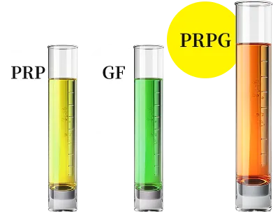 多血小板血漿(Platelet Rich Plasma : PRP)とは、ご自身の血液から、遠心分離技術により血小板のみを抽出した成分です。血小板の内部には天然の成長因子が多量に含まれており、組織の再生と修復を促進します。